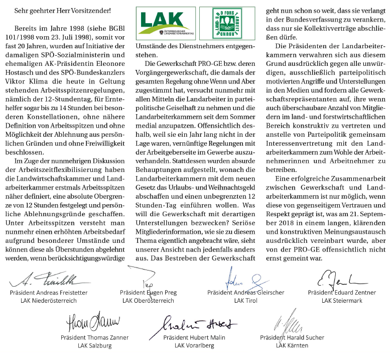 Landarbeiterkammer TirolAktuellesNewsOffener Brief an den Bundesvorsitzenden der PRO-GE-NR Rainer Wimmeroffener Brief an den Bundesvorsitzenden Wimmer